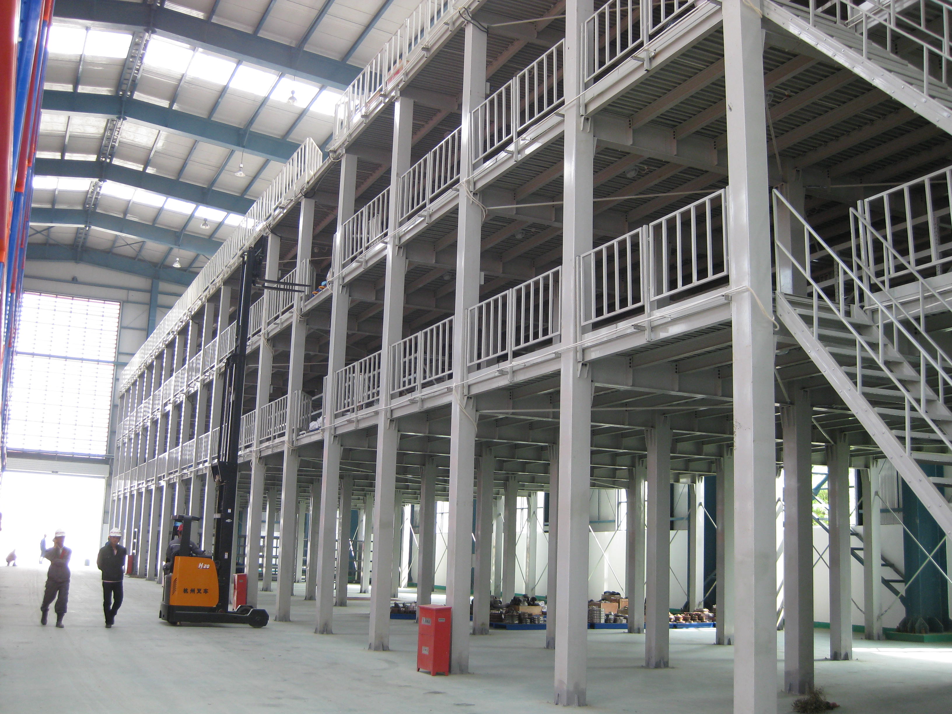 primary and secondary beams. The goods is sent to the second and third floor by