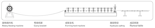 decoiler→coil strip feeding→roll forming→cut to length→collecting platform→Finish
